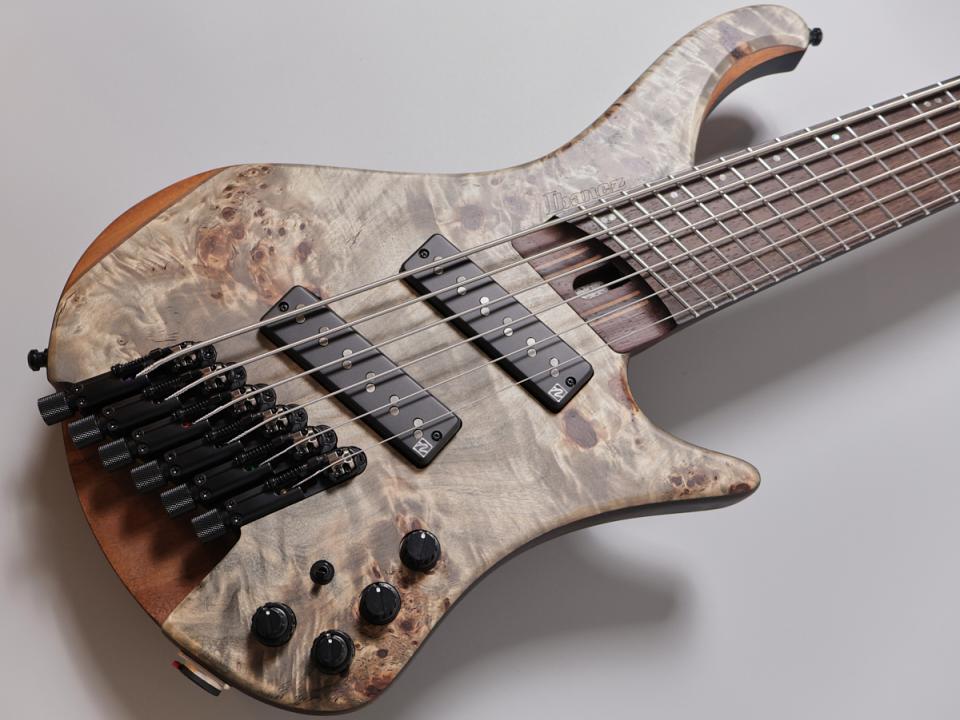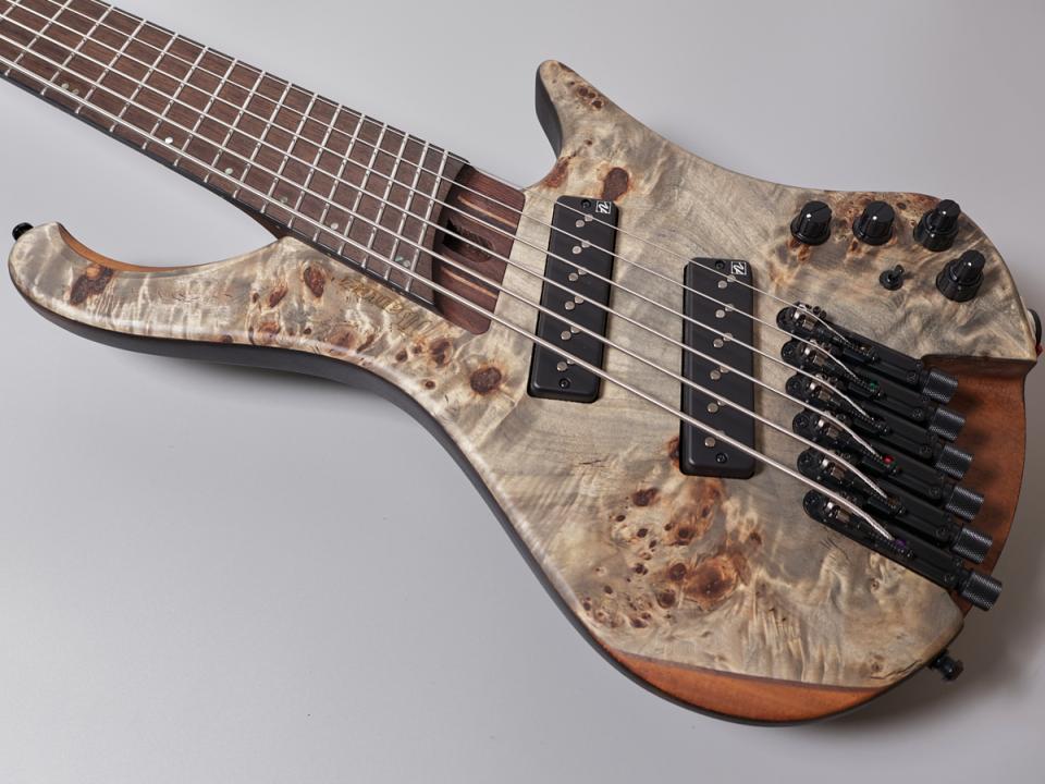 ボディトップに希少材ポプラバールを採用した、ヘッドレス6弦 マルチスケール仕様です。