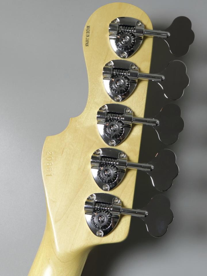 ピックアップにはオリジナルのVJ-5をマウント。アルダー材の持つミッド感とローエンドの安定感、ジャズベースらしいシャープなサウンドも特徴です。また、つば出し21フレット仕様となることでスラップ時の音抜けの良さもサウンドの特徴になっています。ブリッジにはGotoh 404BO-5をセットすることで表通しだけでなく、裏通しにも対応してくれますので、プレイヤーの好みに応じたテンション感にアップデートすることが出来ます。