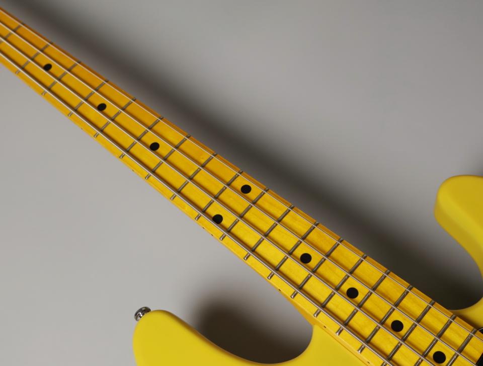 エルボーコンター、バックカットを施さないボディデザインに、特徴的なピックガードとラージポールピースのハムバッカー・ピックアップはそれだけでアイコニックな存在感があります。ネックに使用されている木材はメイプルで、ナット幅をJBと同様の約38mmとすることでプレイアビリティが高く、スムーズなフィンガリングが可能となっています。
