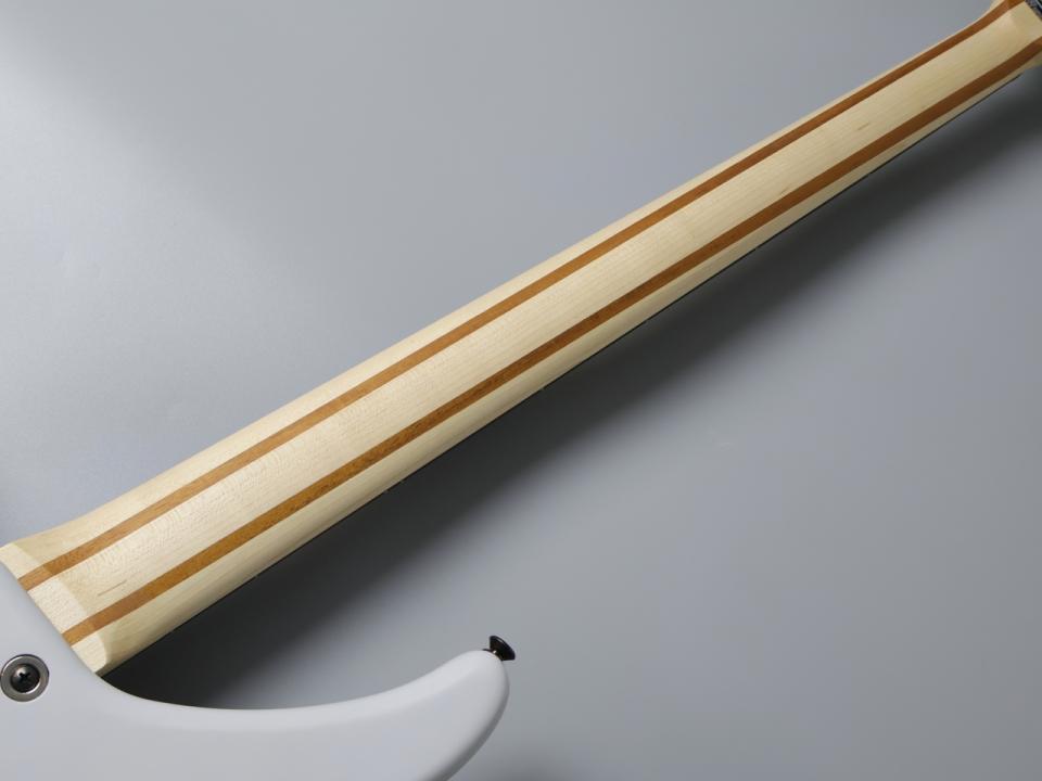 ボディにはマホガニーを使用。ネックにはメイプルとマホガニーの5ピースとすることでネックの剛性を高め、演奏性の高いスリムなネックでありながらも耐久性の高さを実現しています。
