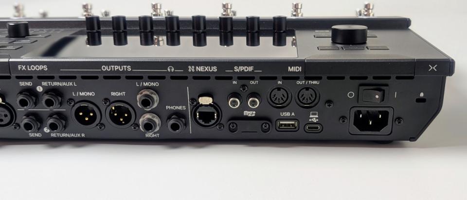 多彩な接続性: S/PDIF入出力、最大2系統の外部エクスプレッション・ペダル対応、アンプ・コントロール出力、さらにはドラム・トリガー入力まで装備。ギターシステムの中枢として、あらゆる周辺機器を統括します。