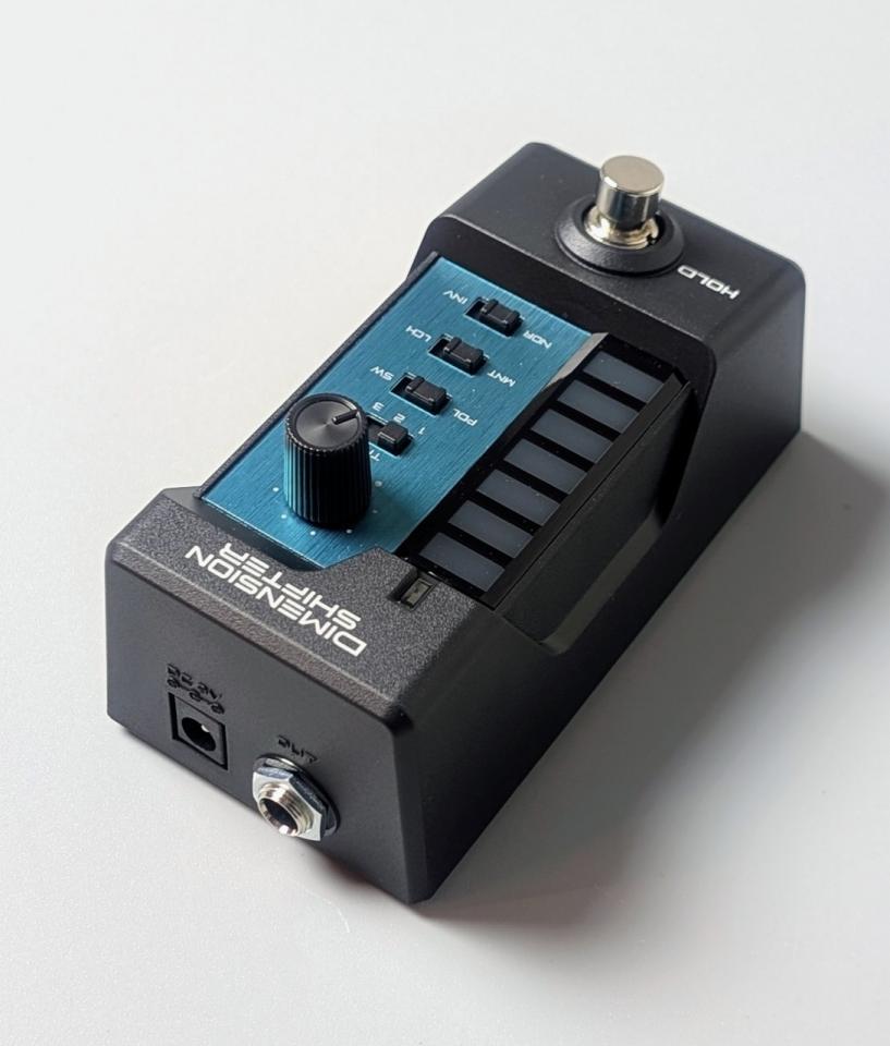 「DIMENSION SHIFTER(ディメンションシフター)」は、ギターストラップに装着し、ギターを構える姿勢やアクションによってエフェクターを操作する、新発想のワイヤレス・エクスプレッション・コントローラーです。