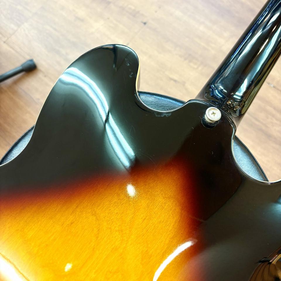 センターブロック構造による豊かな箱鳴りと、ハムバッカーならではの太く温かいトーンが魅力です。