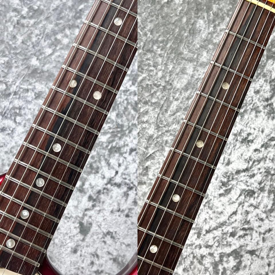 今回の個体はネックとボディの接地面の塗装をさらってより密着度を高めることを目的とした処置がされている点や、リフレット、リナットなど使用感が強い為、お買い得価格にてご提供です。