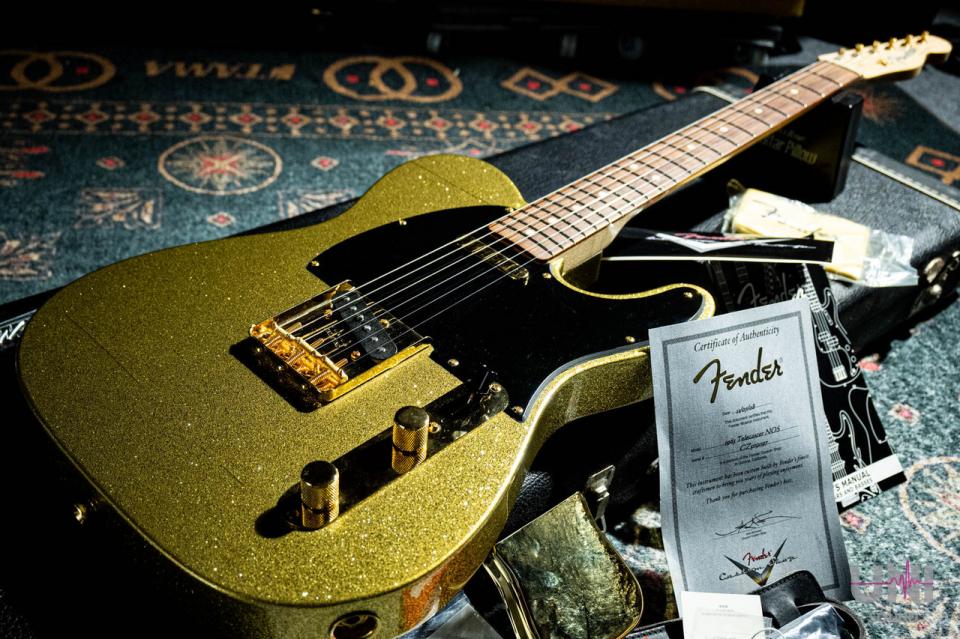 を思い出す方もいるかもしれませんが、本機はそれとは仕様もコンセプトも別物。Custom Shop製のゴールドスパークルTL自体は存在しますが、この「Black and Gold」仕様は他に情報が見当たらず、かなりレアな1本と思われます。