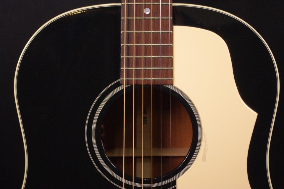 1960年代後期に存在するレアカラーJ-45の復刻版が1960s J-45EBが入荷しました!!トップは人気のアディロンダック・スプルース、サイドバックにはマホガニー、指板、ブリッジにはローズウッドを採用、ブラックフィニッシュにロゴ無しホワイトピックガードの存在感ある1本!!60年代仕様ですがナット幅は約44mmのやや太めのしっかりとしたグリップ、アジャスタブルブリッジが特徴でサウンドもパワフル!シリアルナンバーから2018年に生産された個体で使用感はありますが目立た傷のない美品で演奏性も優れています。ネックヒールへはストラップピンが打っています。LRBaggs社のリリックピックアップが搭載されておりライブでもお使いいただけます。ネックのアングルも理想的でトラスロッドの動作も機能します。フレットの減りは多少出ていますがまだまだ余裕があります。弦高はハイポジションまで押さえやすく合わせていますがサドル側で簡単に微調整いただけます。ストロークではジャキジャキとキレの良いサウンド!アディロントップ、スキャロップドXブレーシングの影響も大きく指弾きも反応が素早く伸びがあり豊かに響きます!是非この機会にお試しください!オリジナルハードケース付き