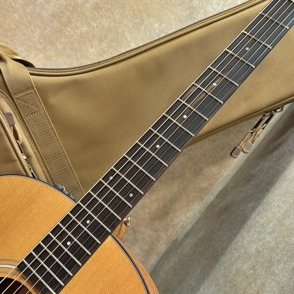 ネックはテイラーらしいスリムで快適な握り心地を採用。ナット幅約42.9mmの設計によりコードワークから単音フレーズまで無理なく対応し、長時間の演奏でも疲れにくい高いプレイアビリティを実現しています。