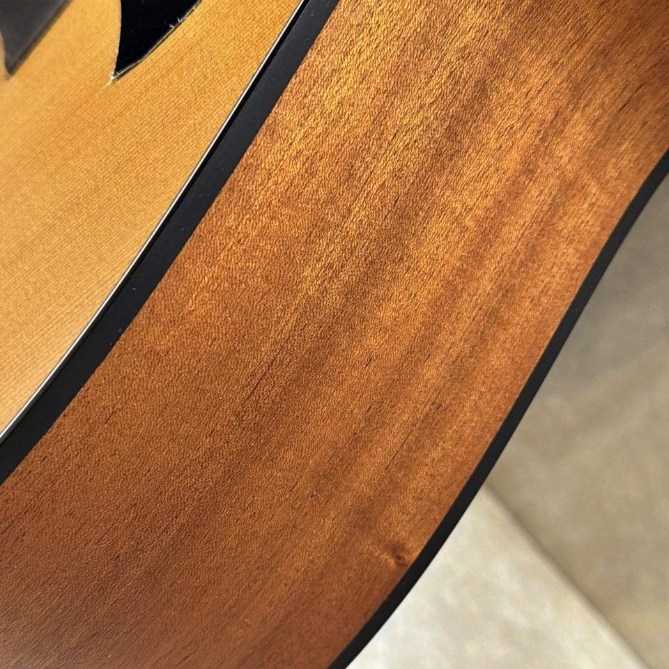 ドレッドノートシェイプならではの音圧を備えつつ、サペリ材特有の軽快で歯切れの良いサウンドが特徴。