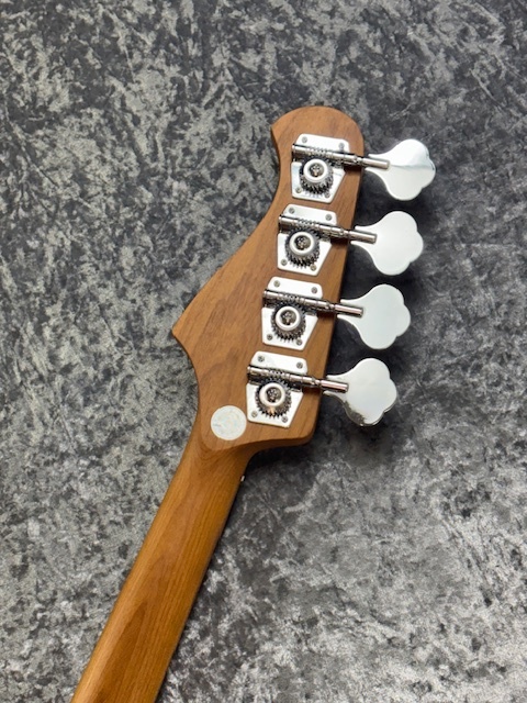 ボディはBacchusブランド最上位機種である「WOODLINE」を踏襲。一般的なJBタイプのエレキベースよりもわずかにスリムに設計されており、抱えやすさと弾き心地の良さを実現します。