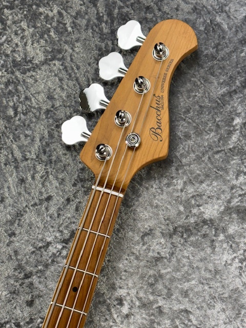 ボディはBacchusブランド最上位機種である「WOODLINE」を踏襲。一般的なJBタイプのエレキベースよりもわずかにスリムに設計されており、抱えやすさと弾き心地の良さを実現します。