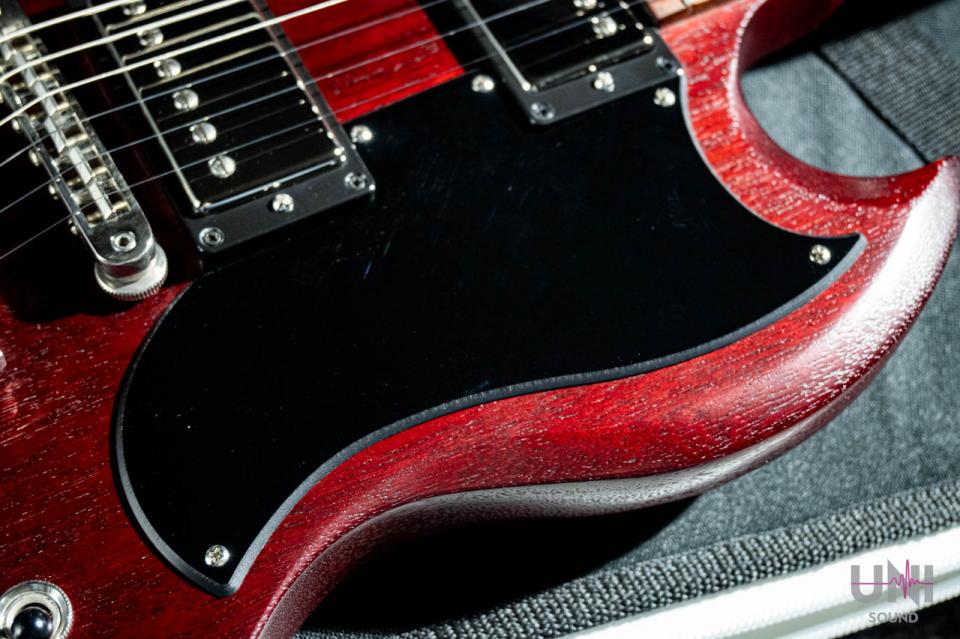 ここ近年は、ほぼ毎年どのモデルもマイナーチェンジを繰り返すギブソンですが、ミニハムバッカーが載っていたり、オープンハムバッカーだったりするSGスペシャルの、2017年の仕様はサテン仕上げのハムバッカーマウントタイプです。