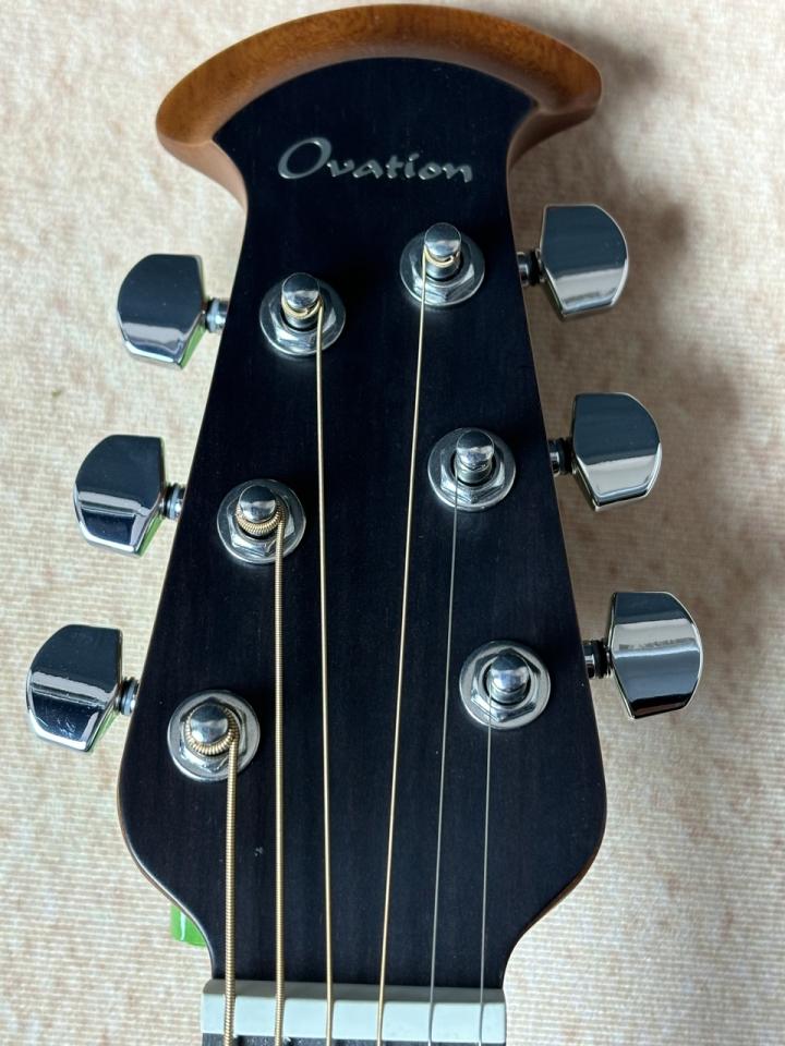 Ovation純正のOP-4CTプリアンプを搭載し、ボリューム/3バンドEQによる直感的な音作りが可能。視認性の高いチューナーを内蔵しており、ステージやリハーサルでも素早くチューニングできます。