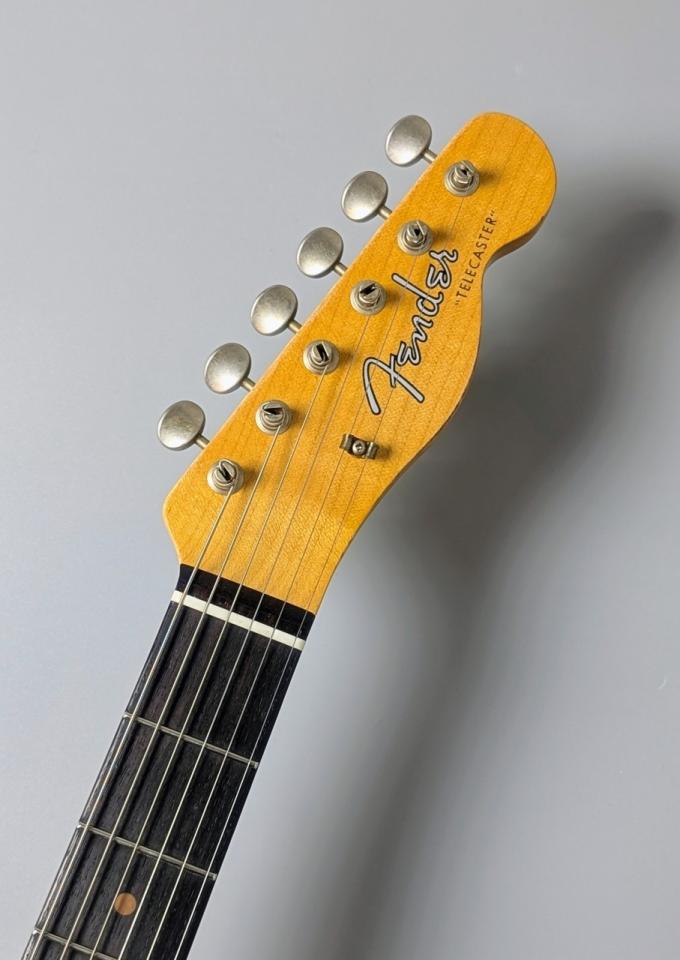 このギターの心臓部には、Fender Custom Shop製ハンドワウンドの1963 Telecaster Relicピックアップが搭載されています。ネックとブリッジの両方に、細部に至るまで手作業で丁寧に巻かれたこのピックアップは、テレキャスター特有の煌びやかな高音域、クリアなミドル、そして力強い低音域を余すことなく再現します。