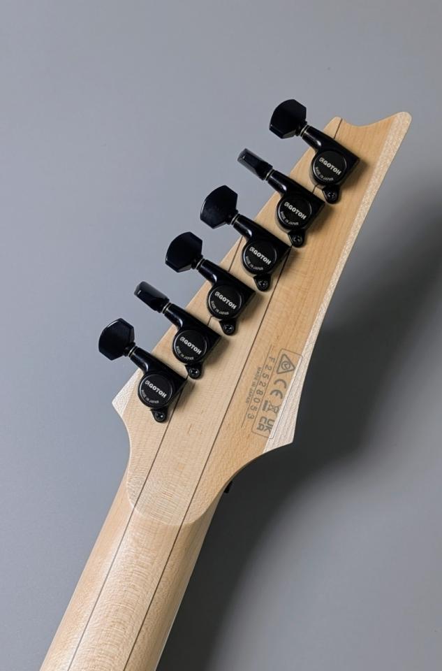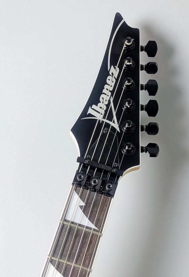 「ボディが独特な形状で、少し小ぶりに見える」と感じる方もいるかもしれませんが、それこそが本機のメリットです。計算されたボディバランスは立奏時でも安定感があり、ハイフレットの演奏性は数あるIbanezのモデルの中でも群を抜いています。 また、極薄の「Super Wizard」ネックは、メイプルとウォルナットの5ピース構造。この薄さでありながら圧倒的な剛性を誇り、アレックスのような高速シュレッドでもネックの動きを気にせずプレイに没頭できます。 ブリッジには名器「Edge」を搭載。激しいアーミングの後でもピタリと戻るチューニングの安定性は、激しいステージワークをこなすプロたちがこのモデルを選んだ最大の理由と言えるでしょう。