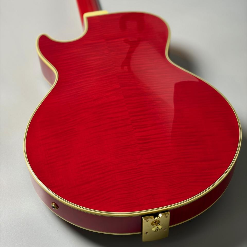 一般的なフルアコ・ギターの数々と比べて小ぶりなボディは抱えやすさからの演奏性も高く、ボディの振動も抑えられるためハウリングにも強い構造となっております。