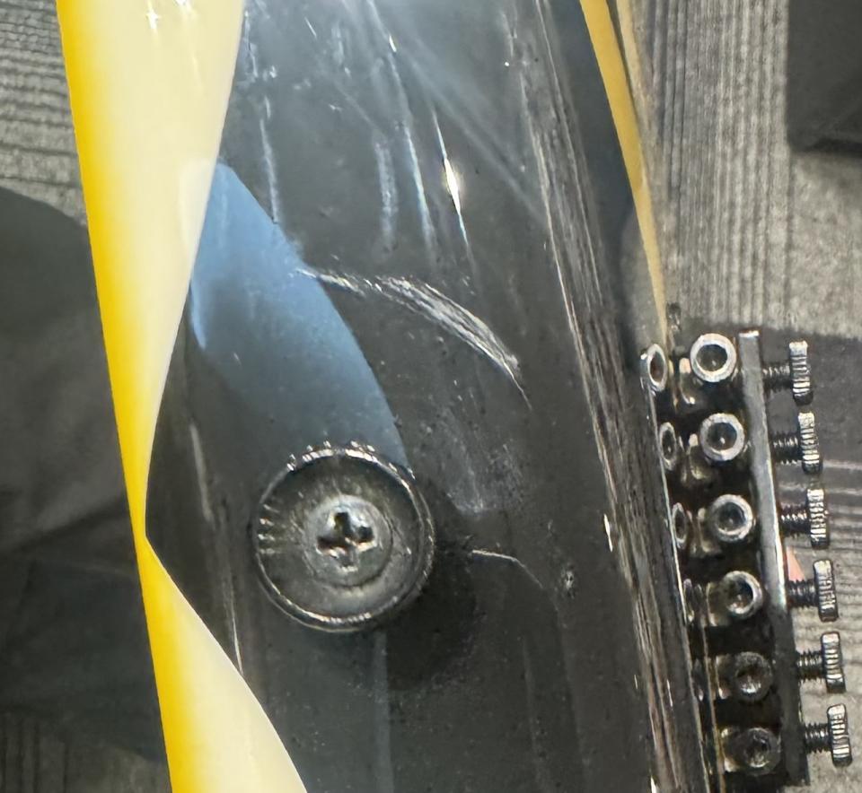 本個体はB級特価品です。ネックジョイント部に小さな欠け、エンドピン付近に擦り跡などがございます。
