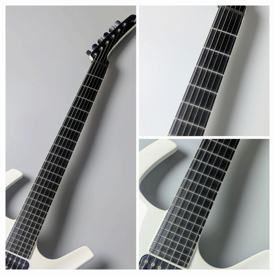 トーンウッドとコンポジットの融合: ポプラ・ボディとバスウッド・ネックを採用。指板には特殊カーボングラファイト(コンポジット)を使用し、極めて滑らかなフィンガリングと高い剛性を両立しています。