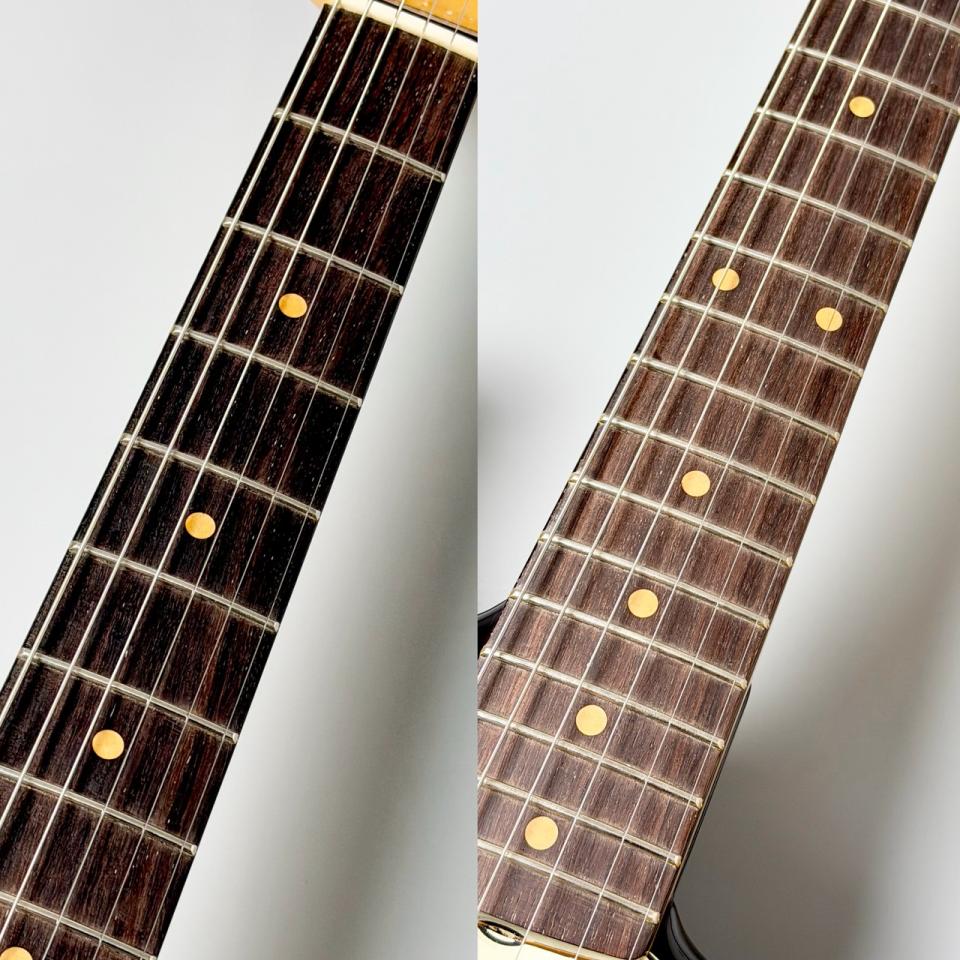 このギターは、1961年生産のストラトキャスターの特徴を完璧に再現しています。特に、美しく洗練された3トーンサンバーストフィニッシュと、ラウンドボードのローズウッド指板が、この年代ならではのルックスを演出します。