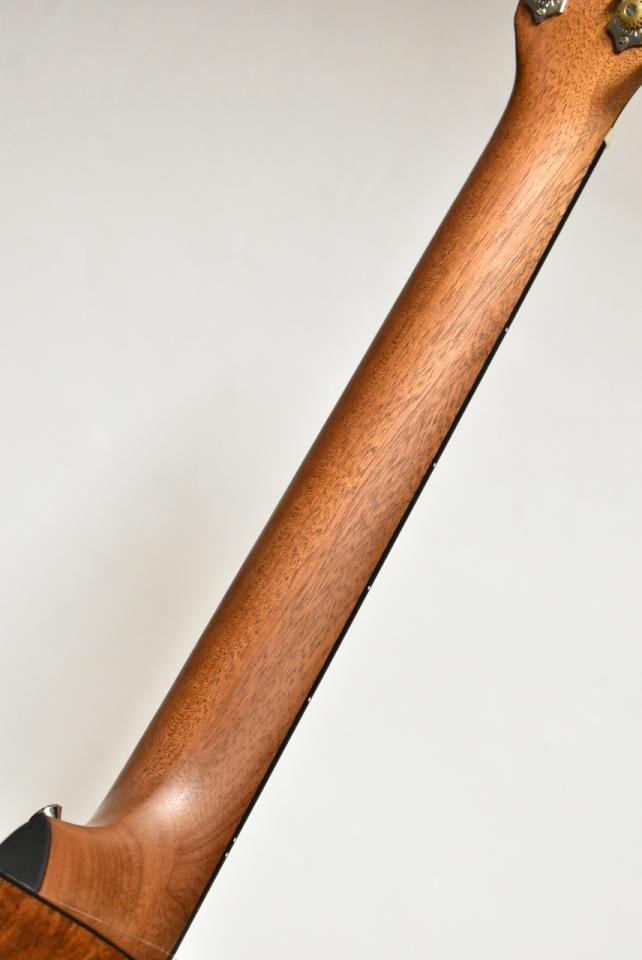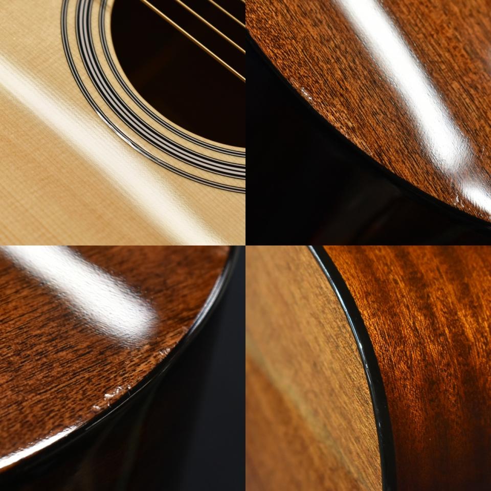 トップにはスプルース、サイド&バックにはサペリを使用した総単板ボディです。