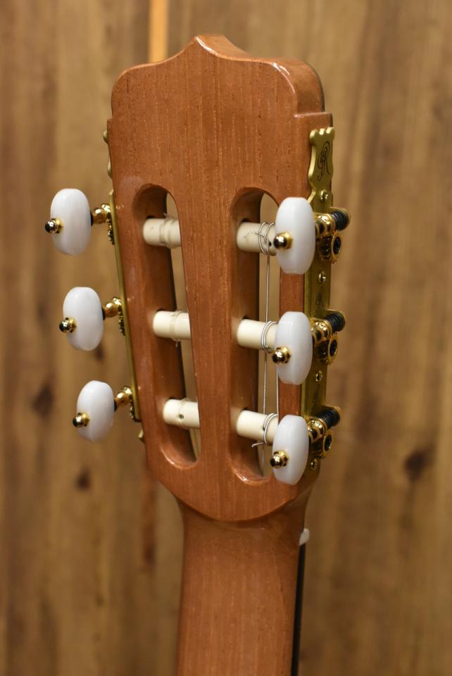 サドルは2mmの余白を残し、ノーマルゲージで調律時、弦高は6弦側で約3mm、1弦側で約2mmと低めでフラメンコのような弾き心地です。
