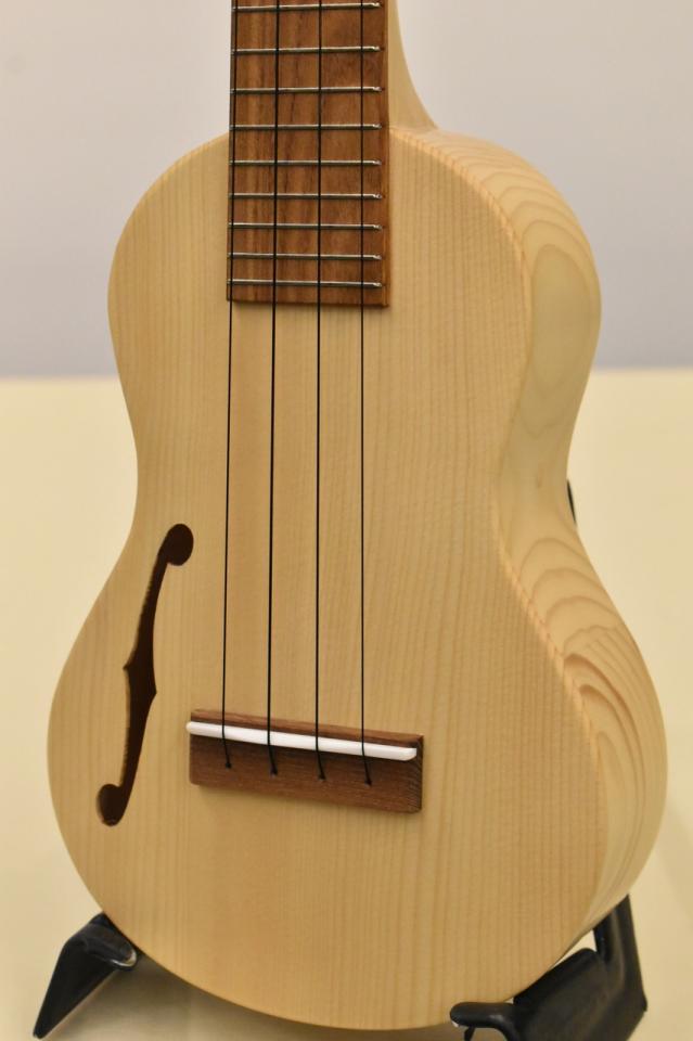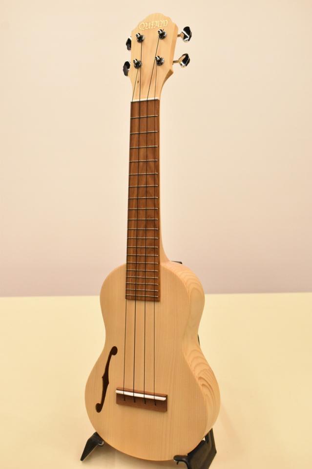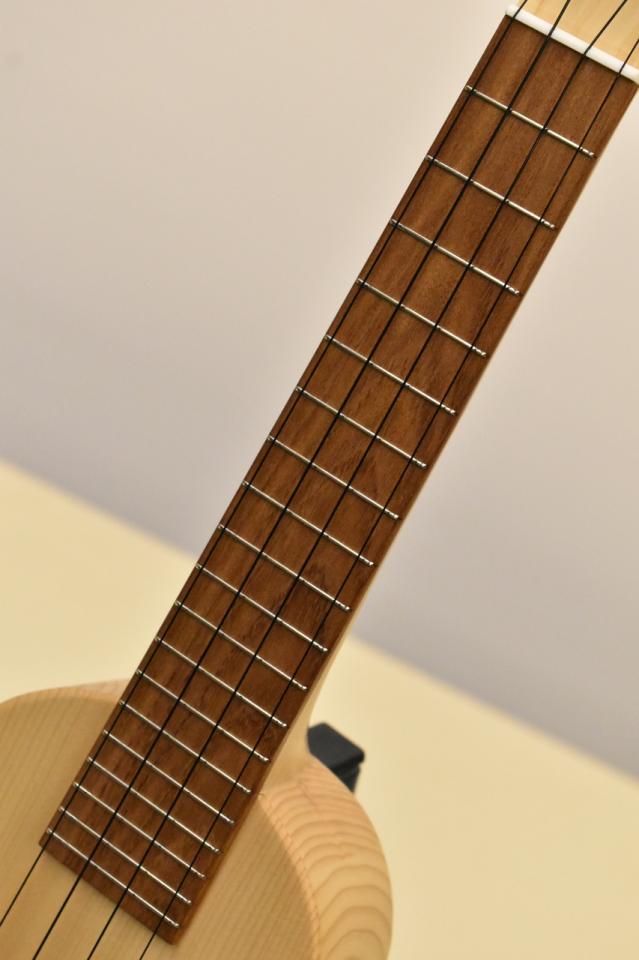 このモデルは14フレットジョイントのソプラノサイズで弦の張力も柔らかいため