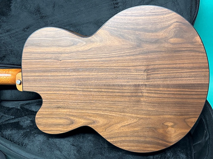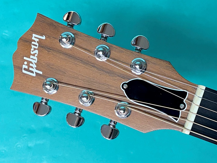 本モデルは、SJ-200同様にジャンボボディを採用していますが、胴厚をわずかに薄く設計することで、抱えやすさが向上しています。ボディトップはスプルース、サイド&バックはウォルナット、ネックはユーティリティ材、指板・ブリッジはエボニーです。ナット幅は43.8mm、スケールは647.7mm、ナット・サドルはTUSQ素材を採用。ネックグリップは「アドバンスド・レスポンス」というスリムな形状で、さらにカッタウェイ仕様のためハイポジションでの演奏にも適しています。最大の特徴であるプレイヤー・ポート(ボディサイドのサウンドホール)により、演奏者自身にダイレクトに音が届き、モニタリングしやすい設計となっています。塗装は艶消しのサテンフィニッシュで、ペグはGrover Mini Rotomaticを搭載し、動作もスムーズです。ヒールキャップにはストラップピンが標準装備されています。