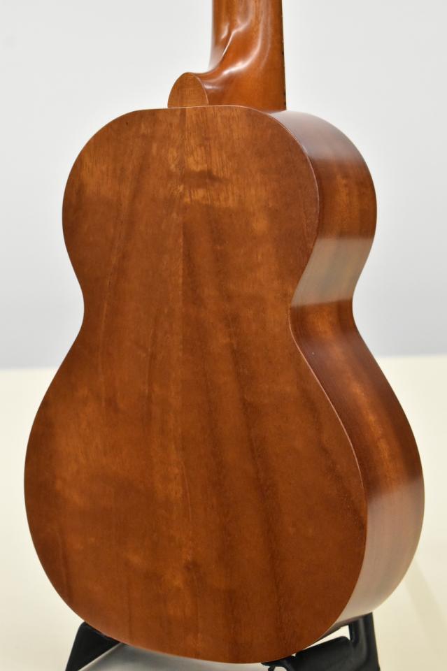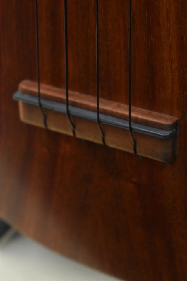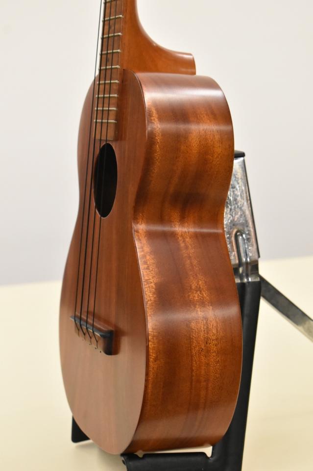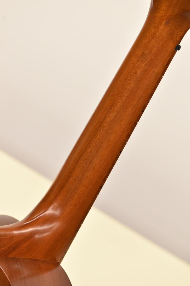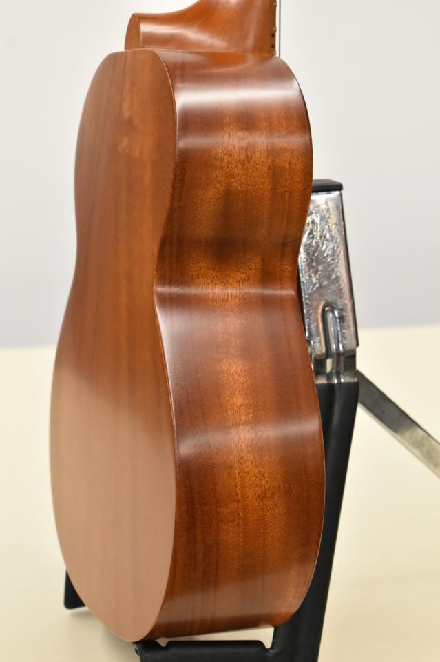 何より特徴的な部分としてハワイアンコア単板のトップ、マホガニー単板(2P削り出し)のサイドバックという構造で