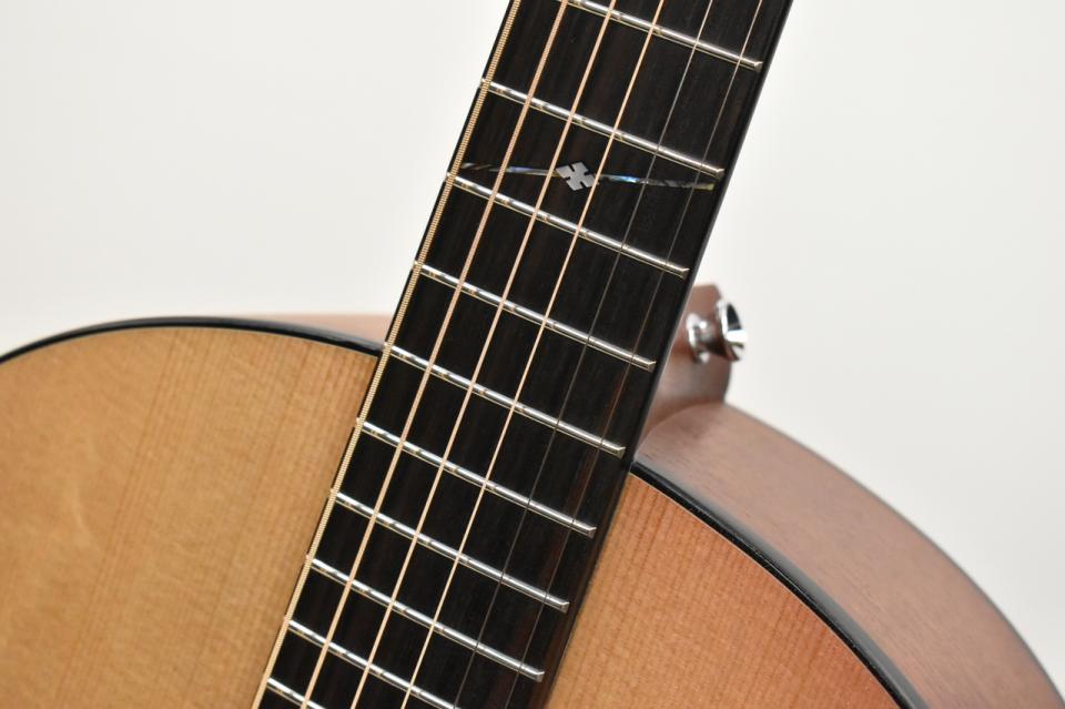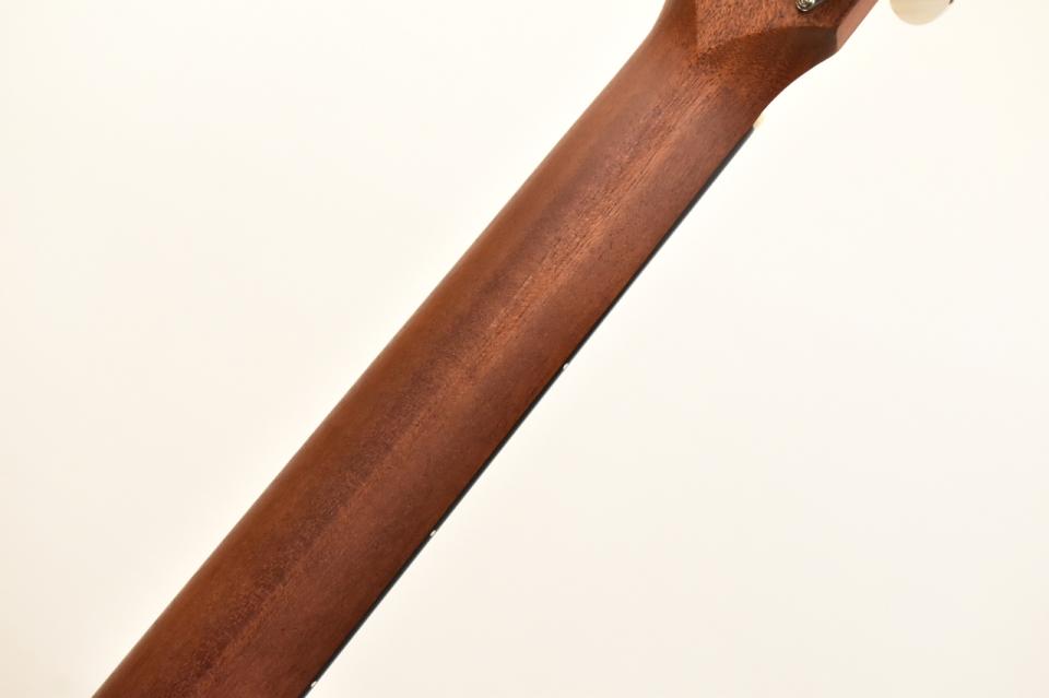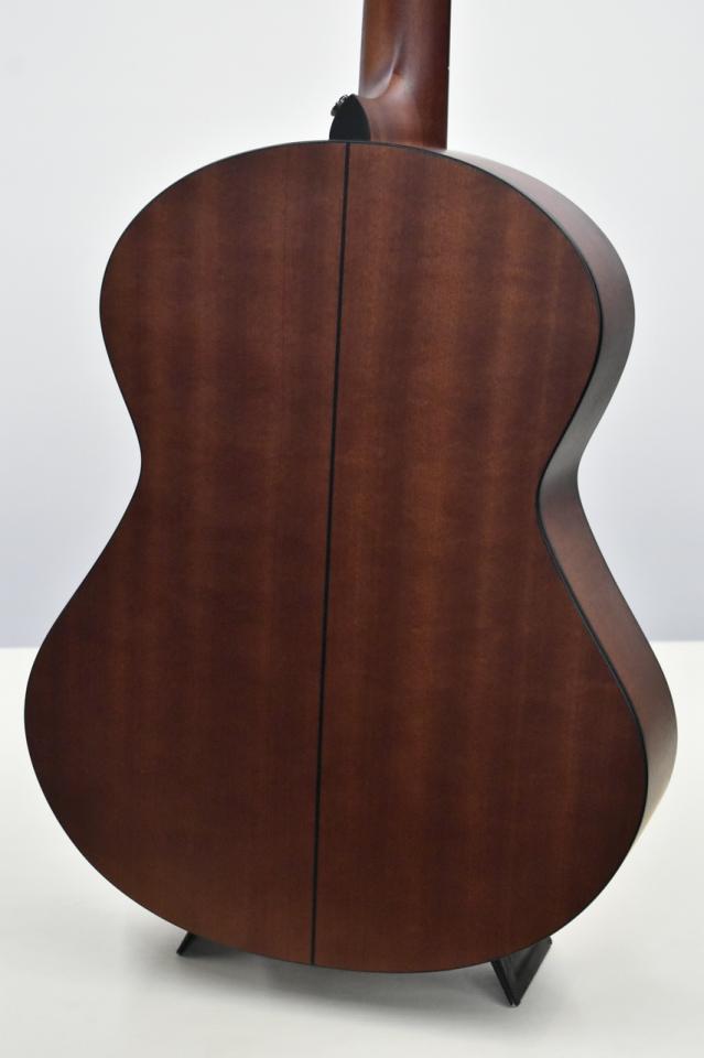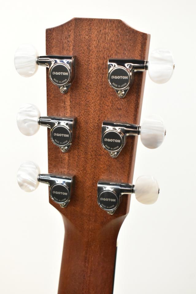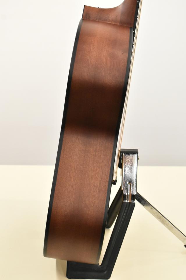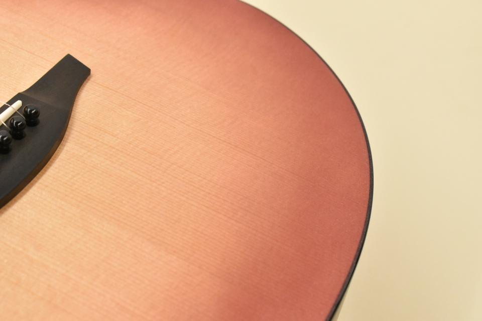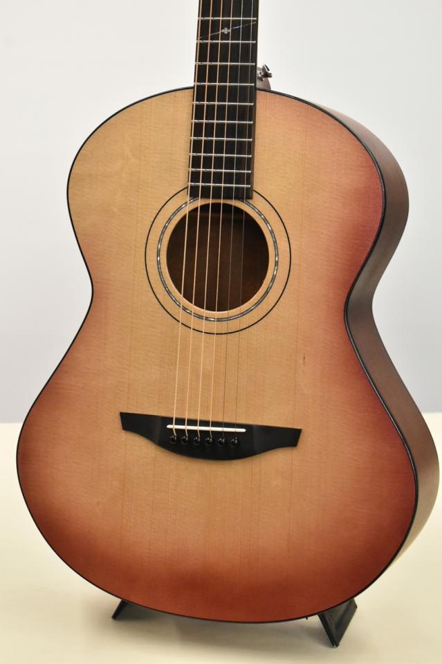表板にスプルース単板材、側板・裏板にマホガニー合板材を使用、エボニー指板・ブリッジ、マホガニーネック、表板はグロス仕上げ、側板・裏板はサテン、ネック裏もサテン仕上げとなります。