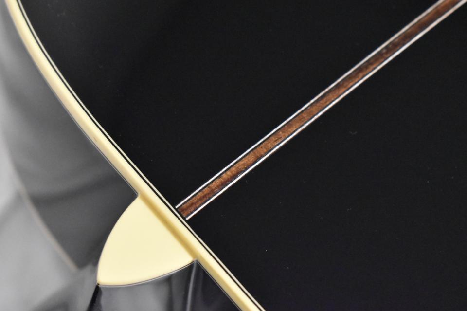 黒黒とした上質なエボニー指板とブリッジ、アンバーナチュラルカラーにトップラッカー仕上げ。