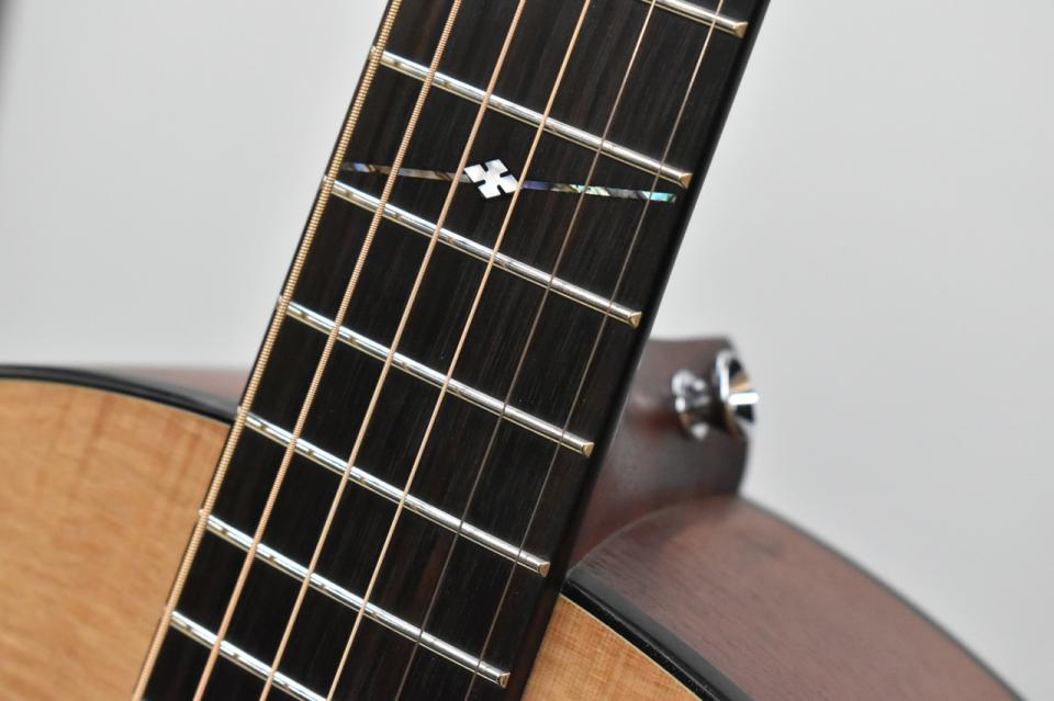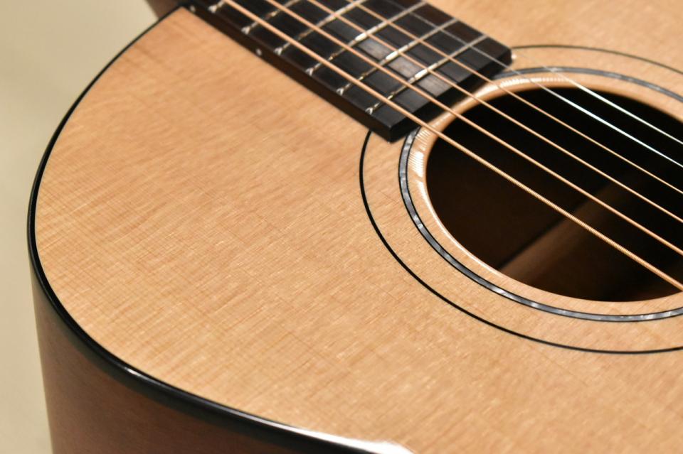 表板にスプルース単板材、側板・裏板にマホガニー合板材を使用、エボニー指板・ブリッジ、マホガニーネック、表板はグロス仕上げ、側板・裏板はサテン、ネック裏もサテン仕上げとなります。