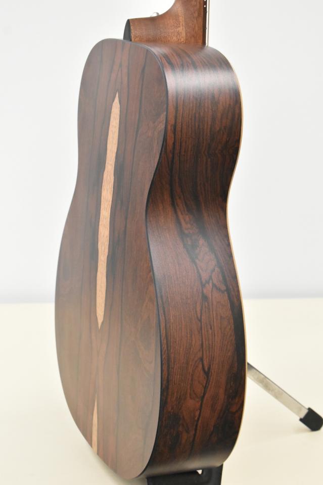 00サイズは000サイズより表面積を少し狭め抱えやすく、音色のバランスをよりクリアに、迫力を押さえつつも音の立ち上がりに優れた特性をもち、体に伝わってくる振動や、全方向に広がる音の響きと生鳴りをご体感いただけます。