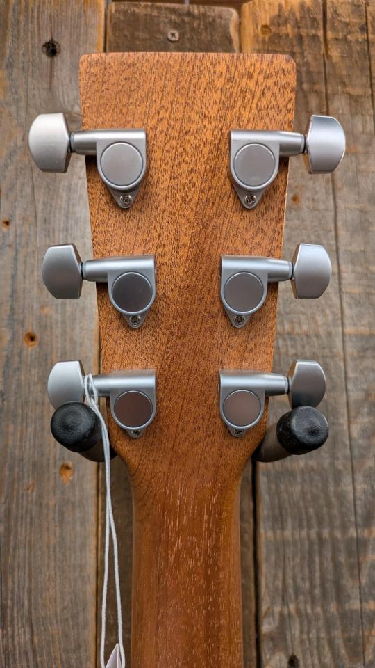 サテンのクローズギア・ペグとストラップピン、サウンドホール周りのインレイにより伝統的なデザインでありながらも、現代的なおしゃれな要素も感じさせます。