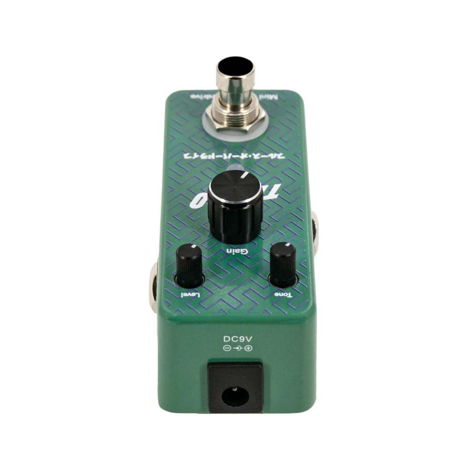 Teisco Mini Blues Overdrive(テスコ・ミニ・ブルース・オーバードライブ)は、ピッキングのニュアンスにしっかり反応する、ベルのように澄んだトーンとタッチセンシティブなオーバードライブを実現します。ルーツロックやクラシックロックに合う温かみのあるサウンドにチューニングされており、小型の低ゲインなヴィンテージコンボアンプをフルにドライブしたような感触を、そのままポケットに収まるサイズで体感できます。