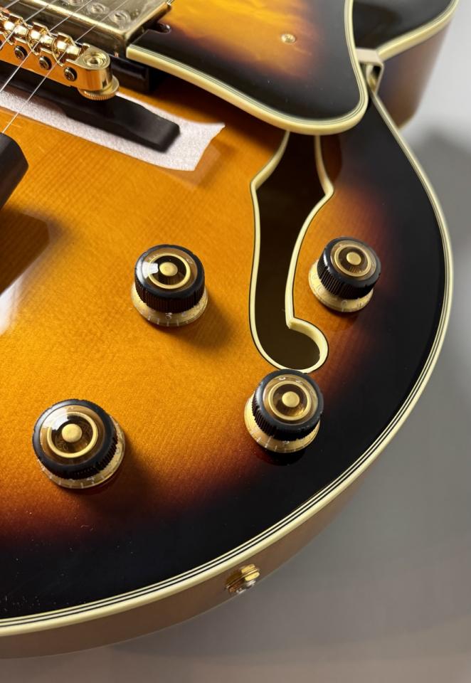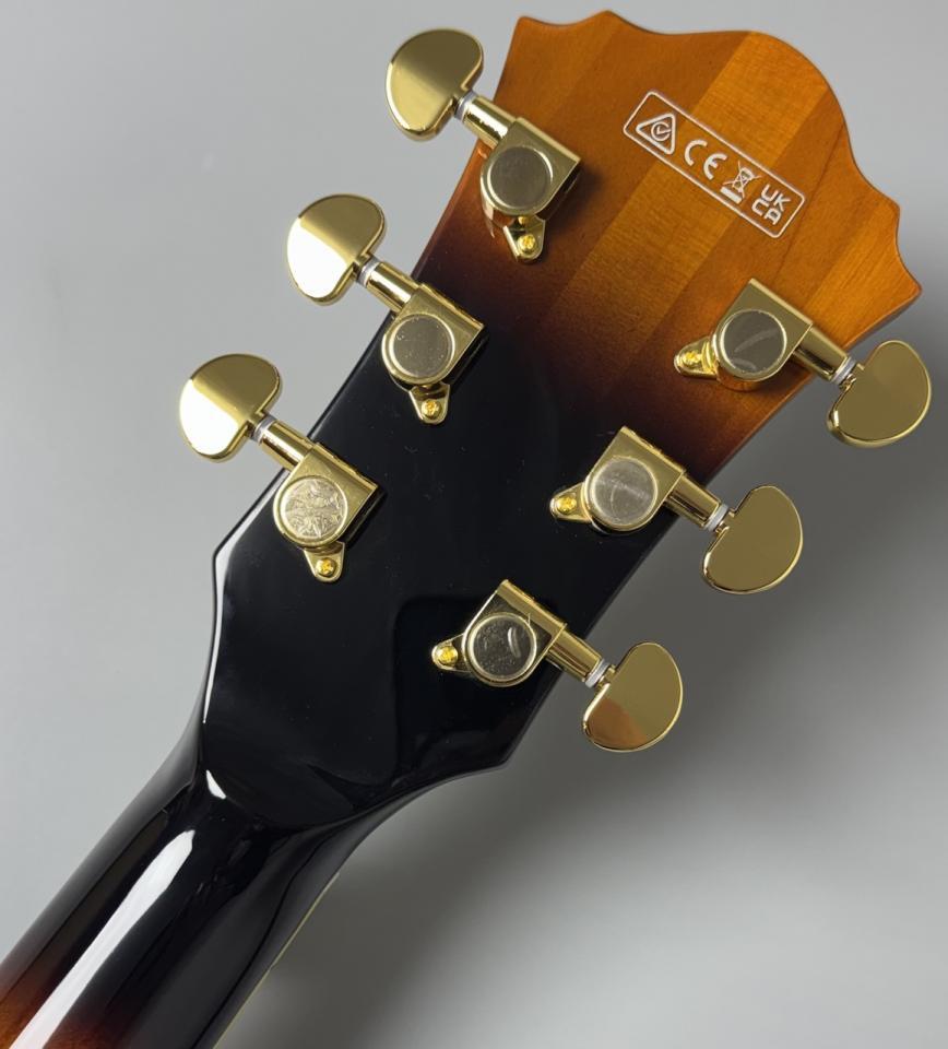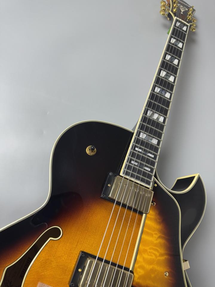 「LGB30」は、ジャズ界の巨匠ジョージ・ベンソンのシグネチャーモデルとして、彼のプレイスタイルとサウンドへのこだわりを凝縮した一本です。小ぶりなセミホロウボディは取り回しが良く、その美しいバイオリン・サンバースト・カラーは、ステージ上で洗練された存在感を放ちます。