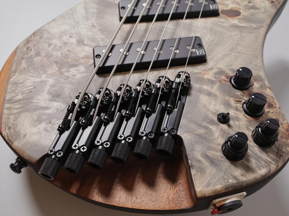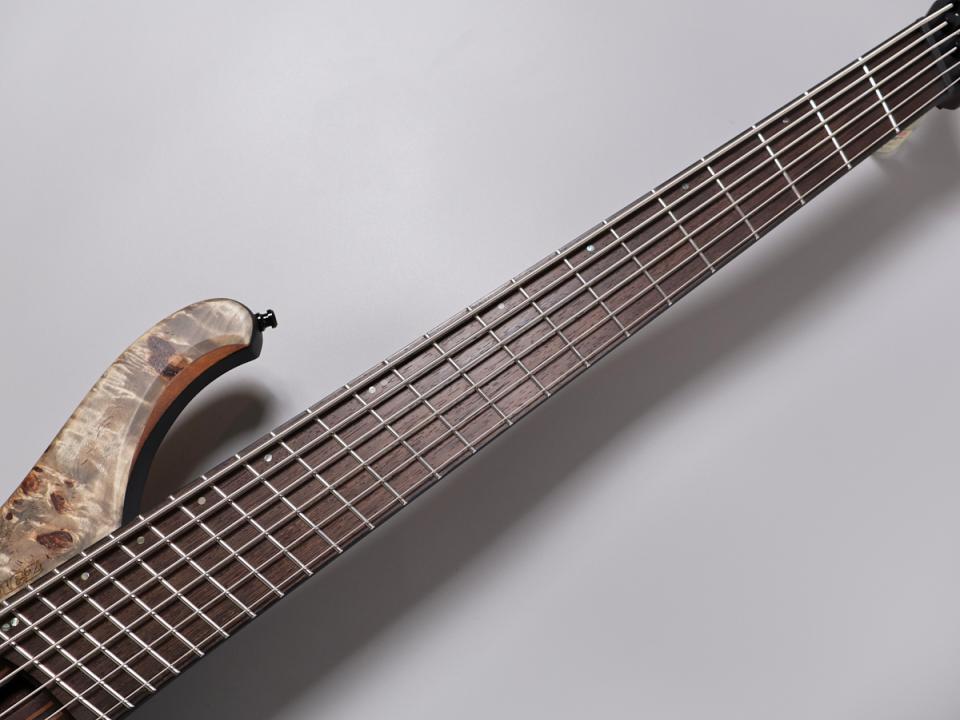 ボディトップに希少材ポプラバールを採用した、ヘッドレス6弦 マルチスケール仕様です。