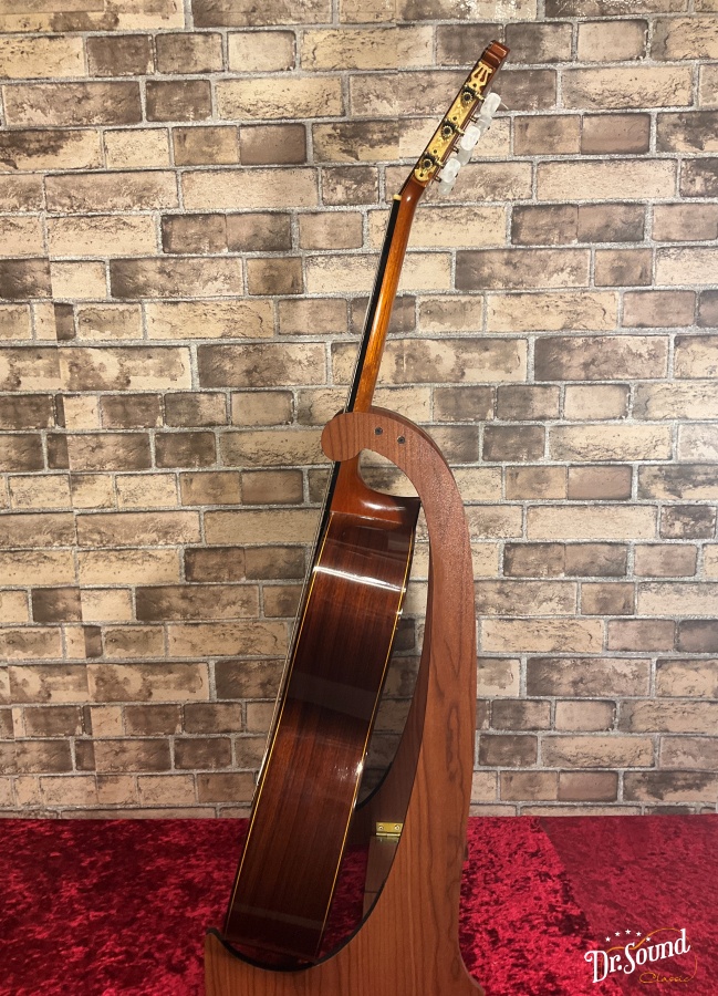粘りとコシのあるサウンドで華やかさも充分に兼ね備えており、豊かな音量、重厚な響きを持っています。輪郭のはっきりしたサウンドでありながら、柔らかさや情緒を持っており、音色の変化、音量の強弱など表情豊かな曲想を助長してくれる1本です。音色の変化など様々な表情のつく楽器で、弾いていて楽しいギターです。スペインらしい明るさと華やかさ、伸びやかなサステインが心地よいです。