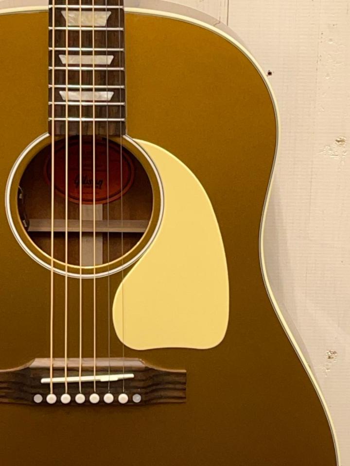 J-45スタンダードをベースにキーストンチューナー、指板のディッシュインレイ、アイボリーカラーのピックガードなど、