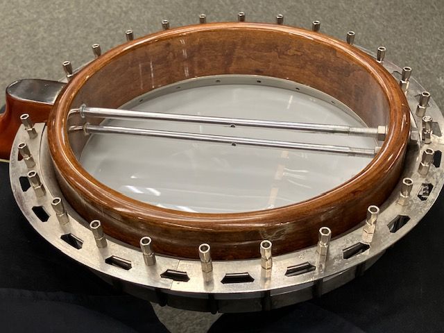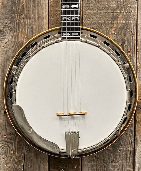 他のVegaバンジョーとは異なり、Gibsonスタイルの20ホールトーンリングが載っており