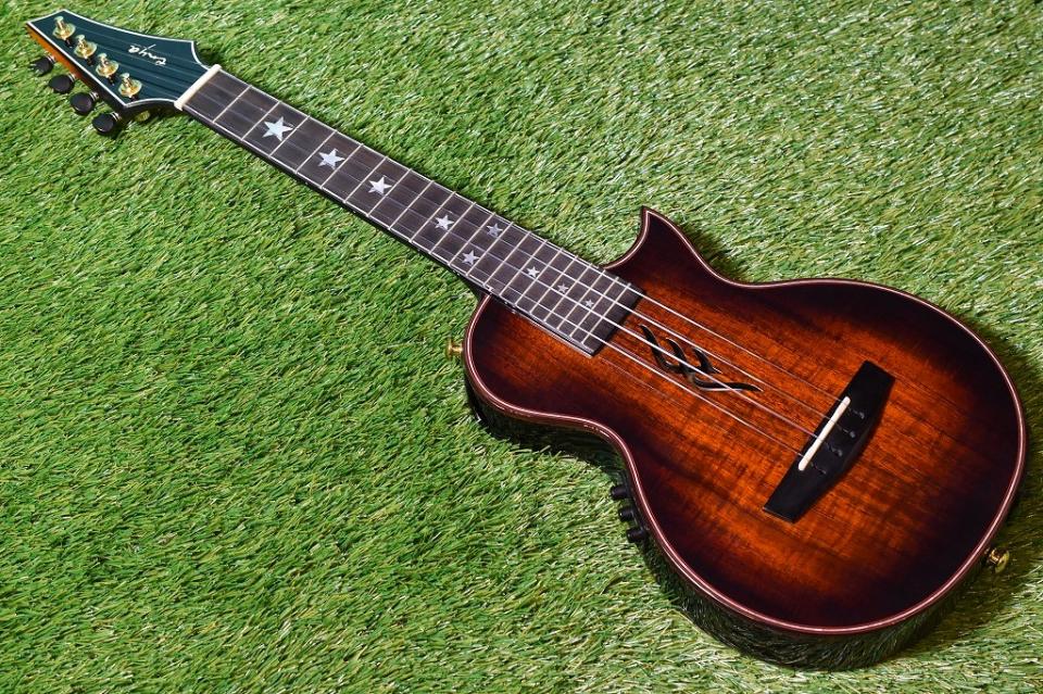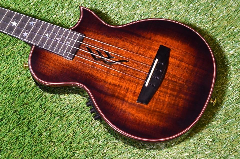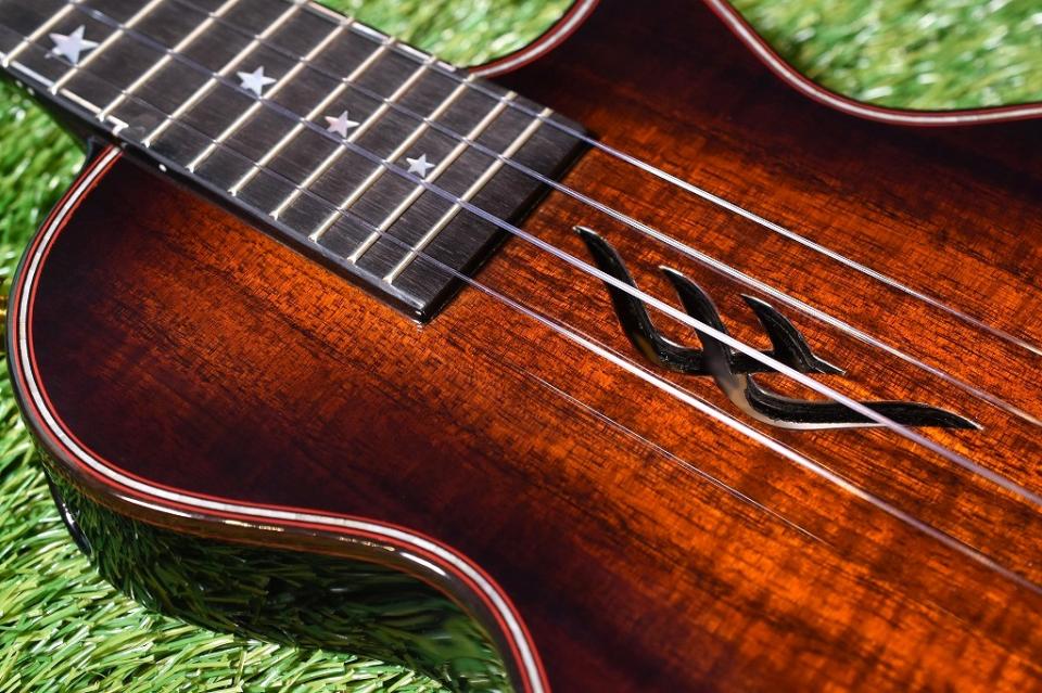 テナーサイズのシングルヘッド仕様で、アバロンのインレイや★のポジションマークなど、