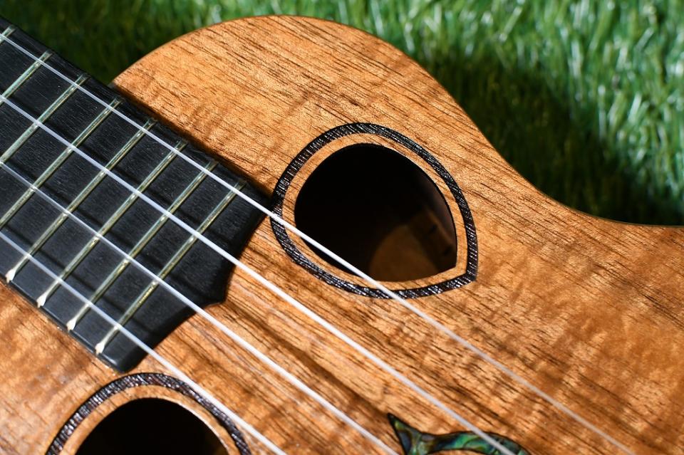 この個体はダブルホールタイプのコンサートサイズ。