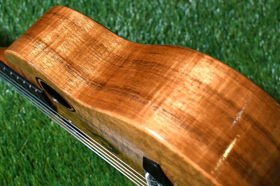 ボディには杢目の良い虎杢のハワイアンコアを使用。