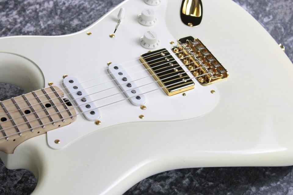 アッシュボディにメイプル1ピースネック、リアPUにハムバッカーを搭載したSSHストラトスタイルの本機。