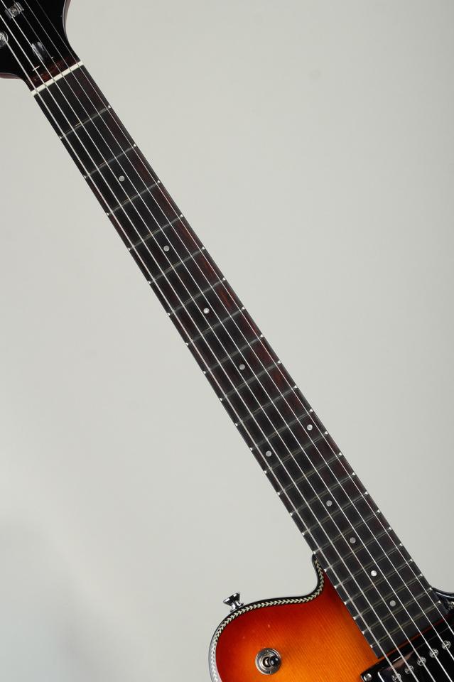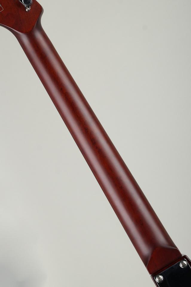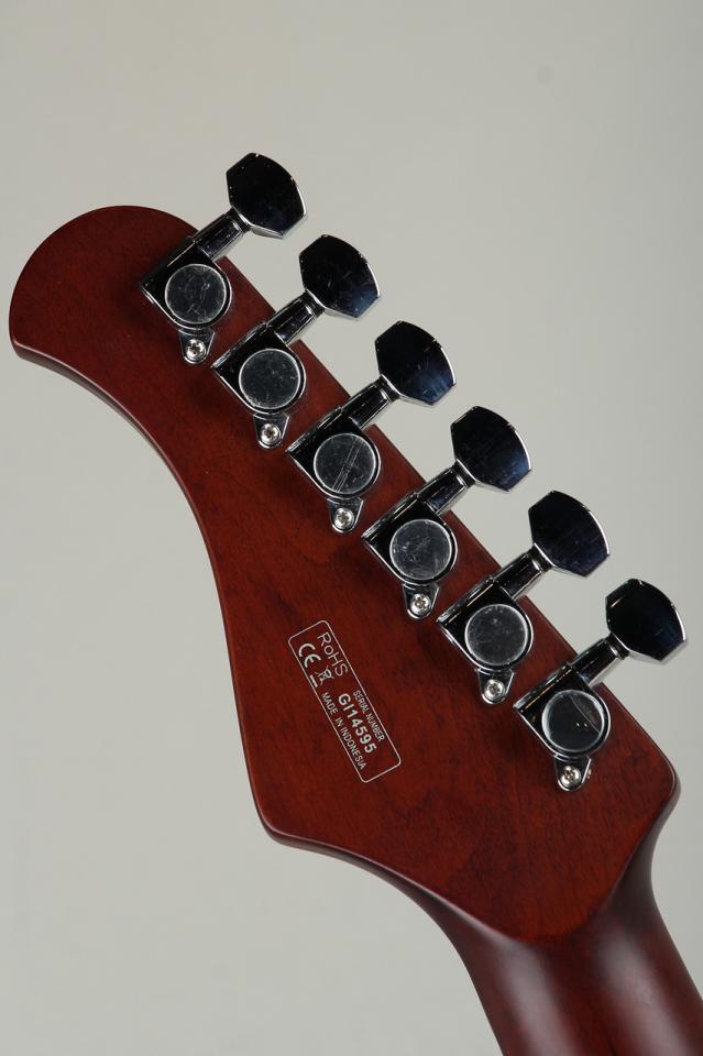 トップ材のスプルースはアコースティックギターをはじめ、ヴァイオリンなどのボディにも使用される木材です。柔らかな木質が特徴で、豊かな生鳴りに貢献します。適度な重量を備えたナトーボディより、立ち上がって演奏する際にもバランス感の良さを発揮します。ボディ外周に施されたヘリンボーンスタイルのバインディングと落ち着いた雰囲気のカラーリングが特徴です。