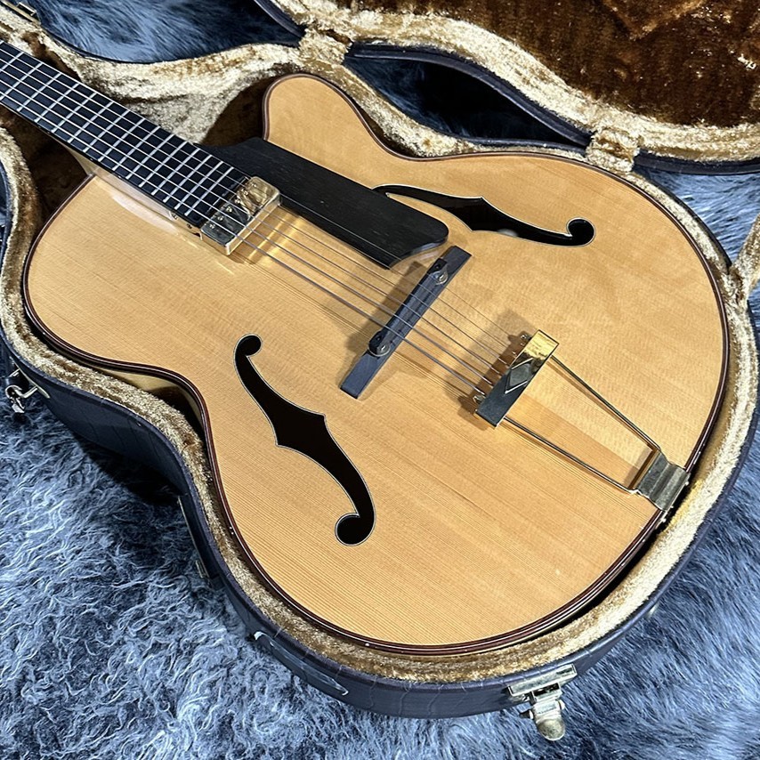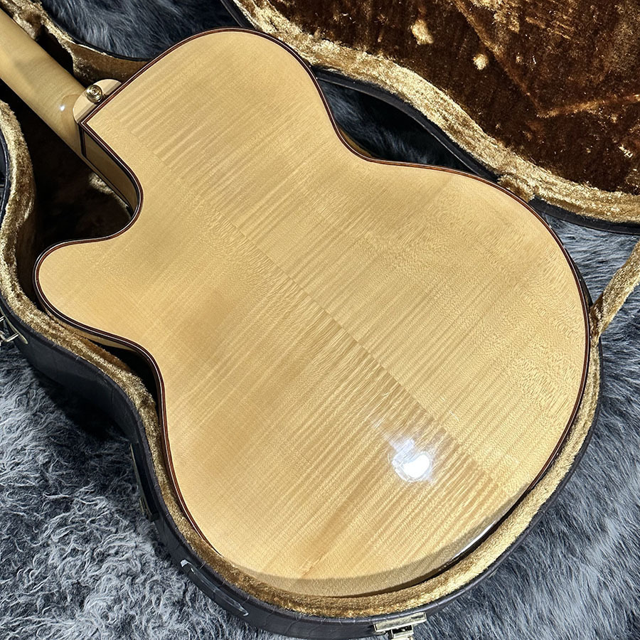 トップバックともに単板削り出しで作られております。甘く芳醇でありながらもハリのあるジャズギターらしいグッドサウンドです。