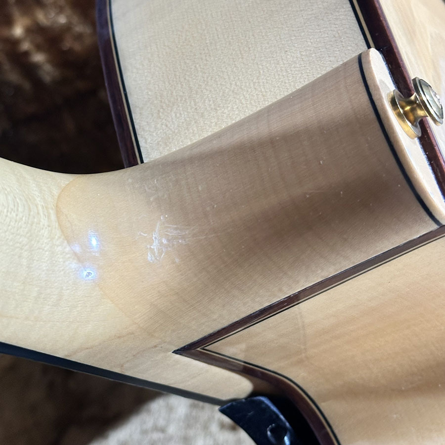 市場で見かけることがほぼないエアーズのアーチトップタイプが入荷しました。約17インチのボディサイズ。スプルーストップ、サイドバックはメイプル、メイプルネック、エボニー指板のウッドマテリアル。