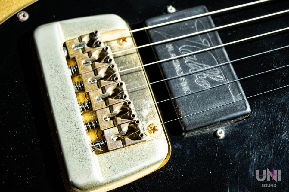 ブリッジはハードテイルのように見えるのですが、ボディ裏にはスプリングのスペースがあり、ブリッジはクラプトンモデルのブリッジに挟んである木片の様な感じでボルトのようなもので固定されています。