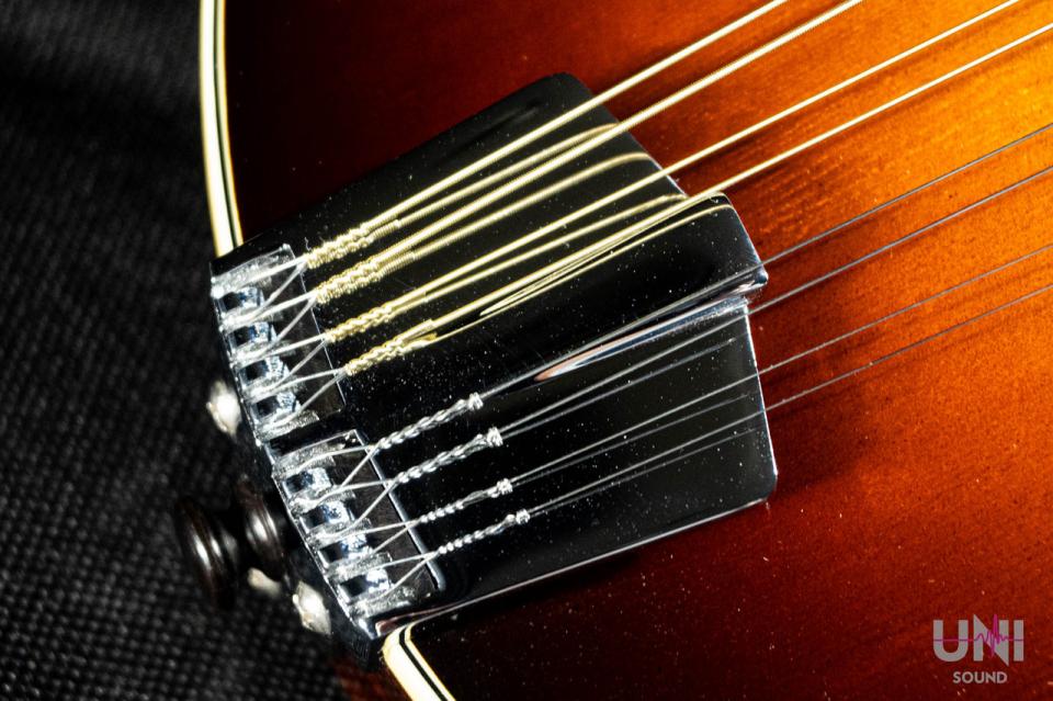 それまでマンドリンの多くはヨーロピアン・スタイル=ボディバックが丸くなっているクラシックスタイルのマンドリンを踏襲していましたが、ギブソンは、ヴァイオリンなどの楽器に見られるような彫りの深いアーチ型のプレートを採用。
