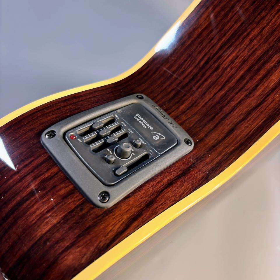 シダー特有の甘く温かみのあるサウンドと、ローズウッドの輪郭のハッキリした音が特徴で、フィンガースタイルや弾き語りに適したエレアコです。