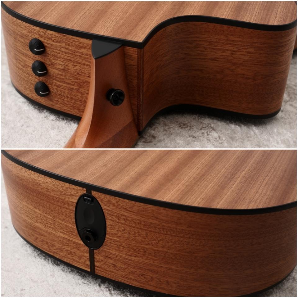 トップにはトリファイド加工が施されたスプルース単板、サイド&バックにはサペリ材を使用しています。