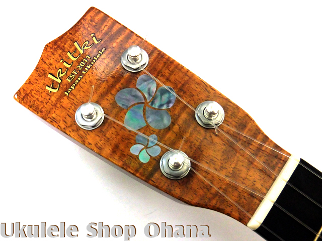 ヘッドにメリアの花をインレイしたウクレレです♪